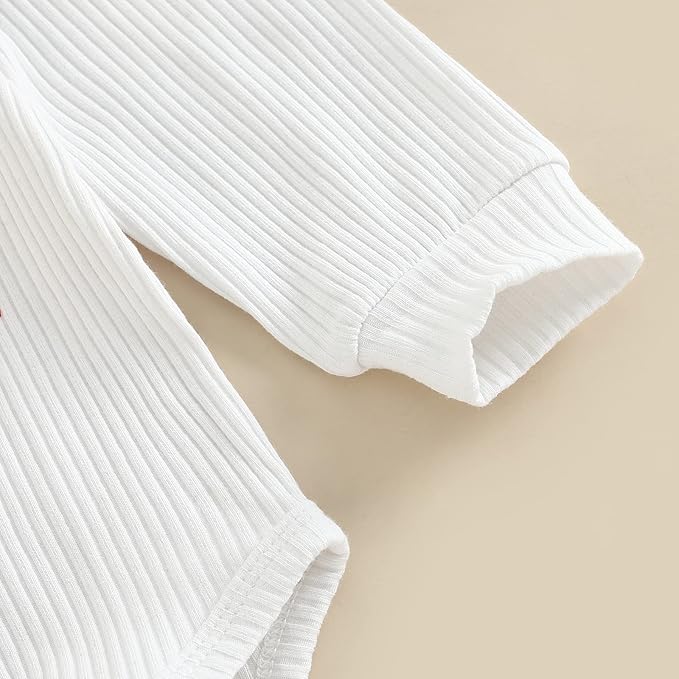 El conjunto incluye un mameluco de manga larga con la frase “My 1st Christmas”, unos pantalones acampanados de terciopelo y una diadema o gorro de navidad a juego que completa el look con un toque festivo y dulce. Confeccionado en algodón suave y transpirable, es perfecto para acompañarla mientras descubre la magia de la temporada.