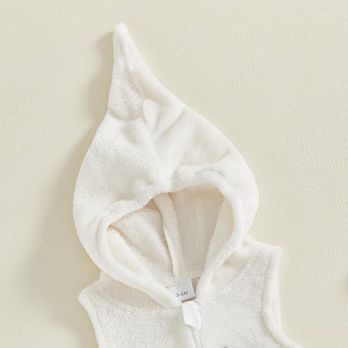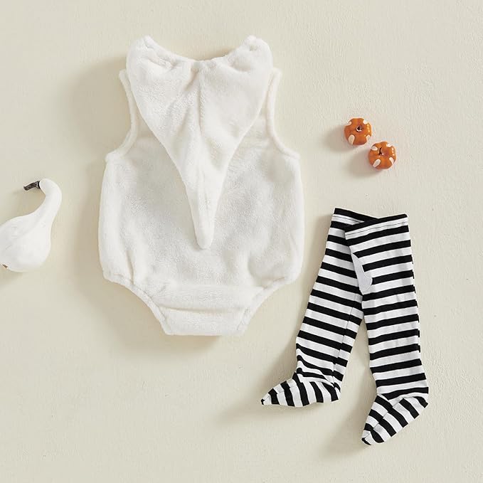 Diseño encantador: mameluco sin mangas con capucha y cremallera frontal, acompañado de medias para completar el look.
