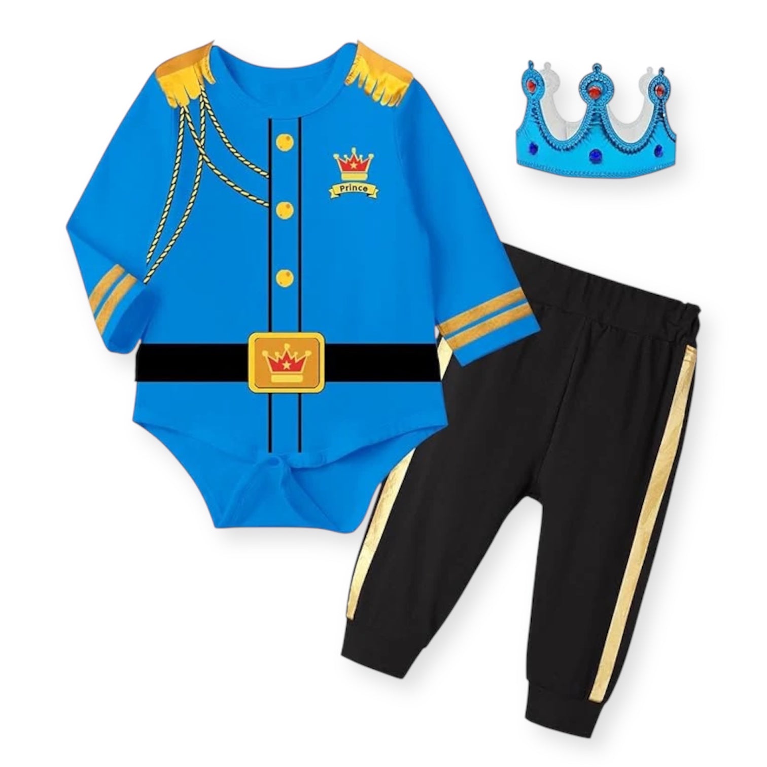 Convierte a tu pequeño en el protagonista de un cuento de hadas con este adorable disfraz de príncipe azul para bebé. Perfecto para vivir un Halloween lleno de magia, para sesiones de fotos memorables o para cualquier celebración especial en familia.