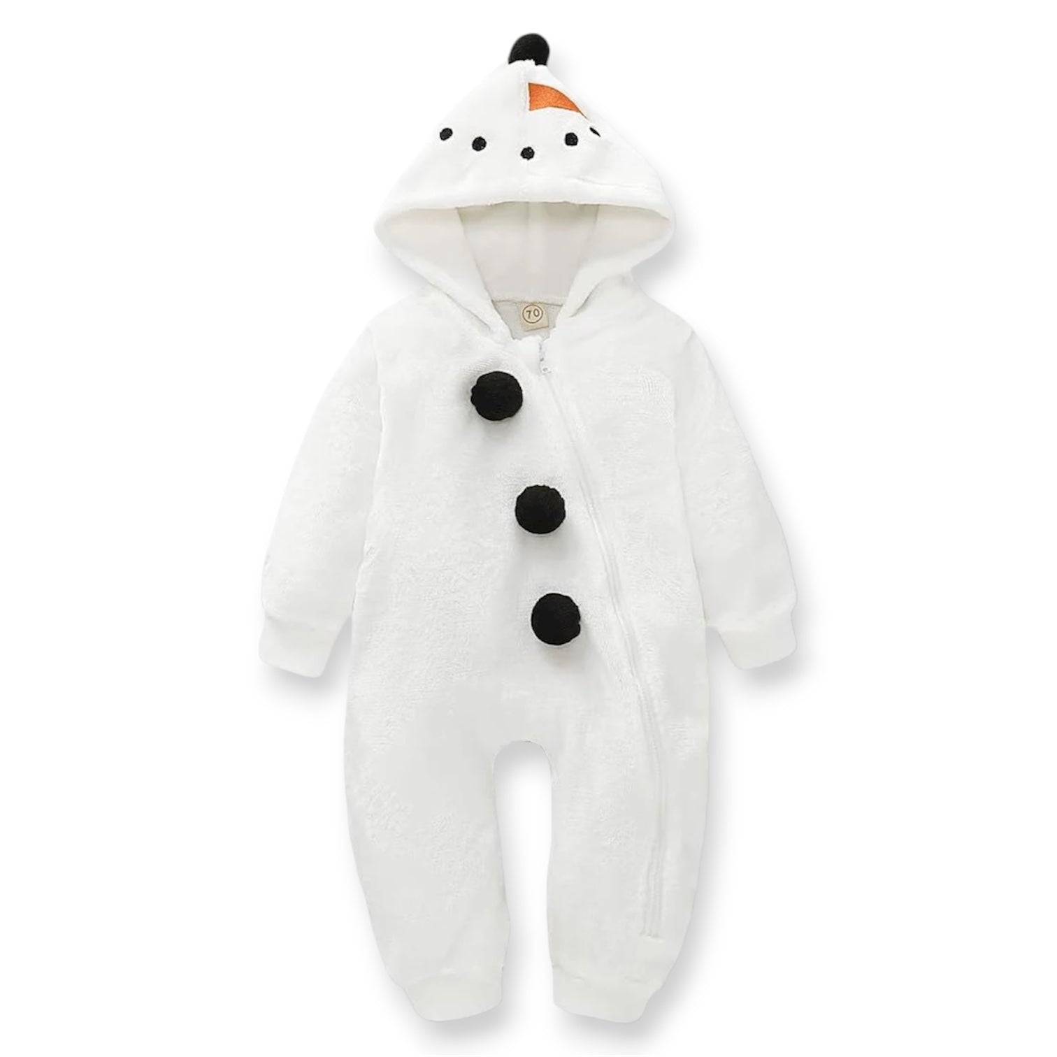 Abriga a tu pequeño con este mameluco con capucha inspirado en un muñeco de nieve, hecho en un material suave, cálido y transpirable, ideal para los días fríos de otoño e invierno. Perfecto tanto para niño como para niña 👶✨