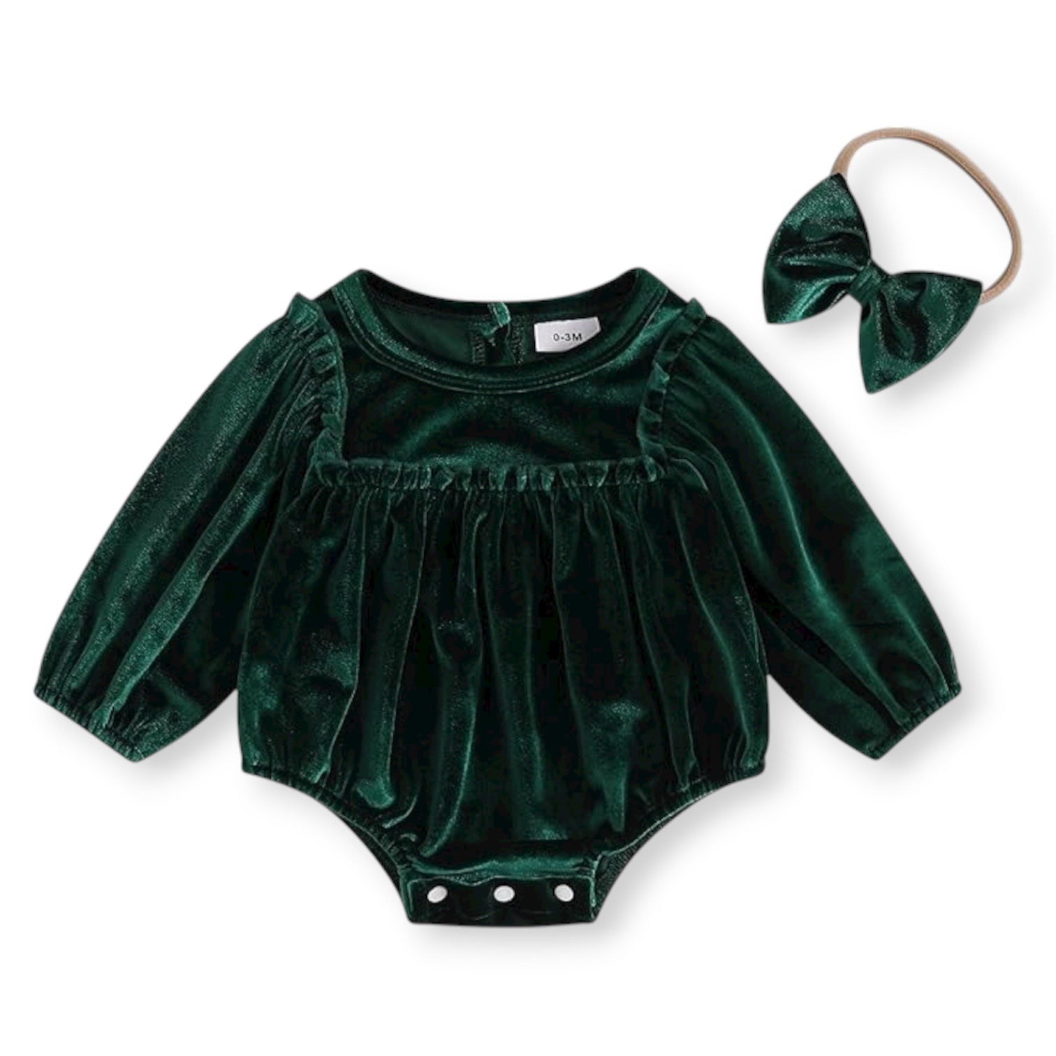Envuelve a tu pequeña en suavidad y encanto con nuestro mameluco Stella, confeccionado en terciopelo ultra suave (95% terciopelo + 5% elastano) que brinda abrigo, comodidad y un brillo delicado que enamora.