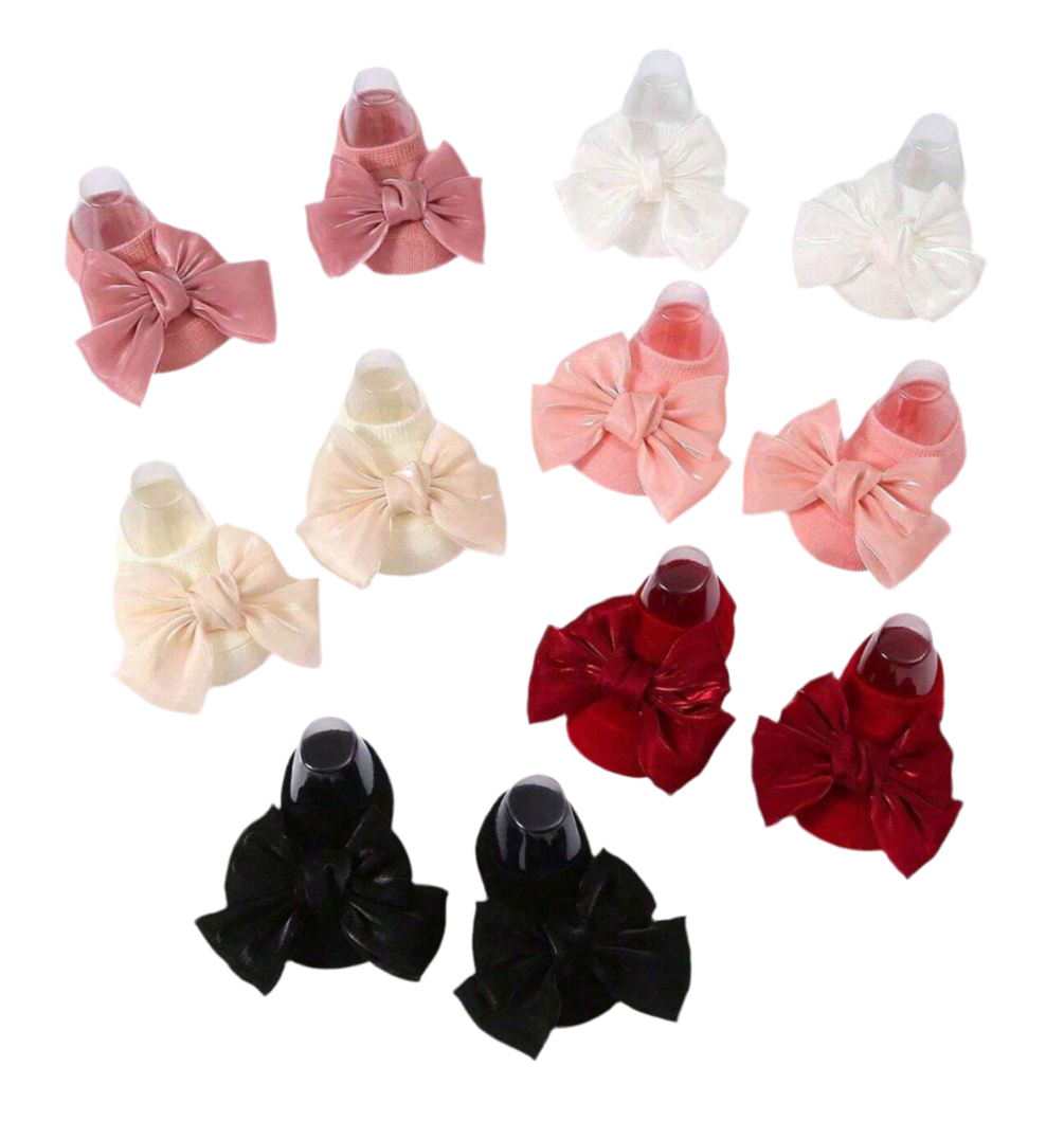 Con un encantador lazo de princesa y un tejido suave y transpirable, estos calcetines multicolores no solo se ven adorables, sino que también mantienen a tu bebé segura y feliz con su suela antideslizante. ¡Perfectos para sus primeras aventuras y juegos!