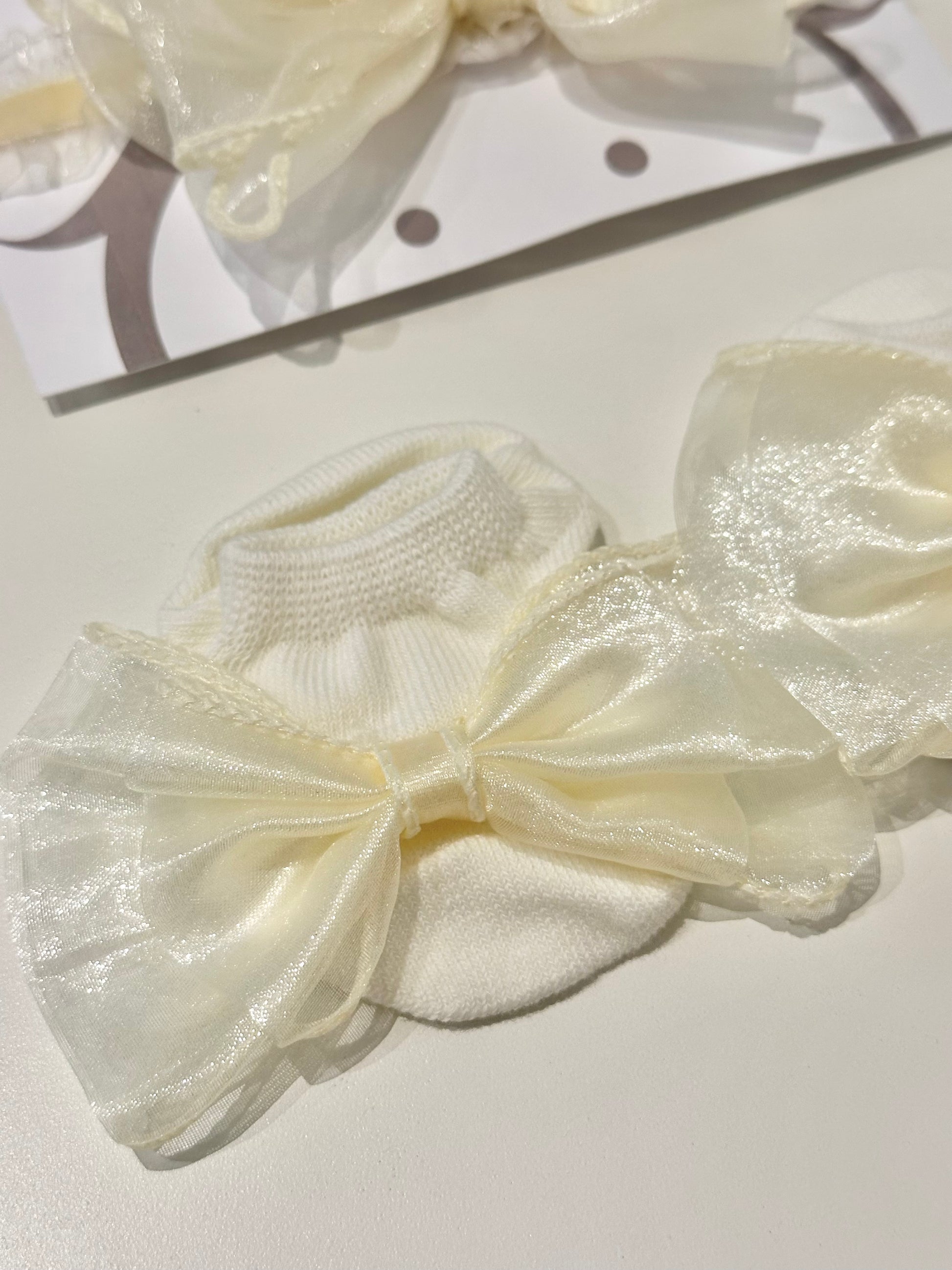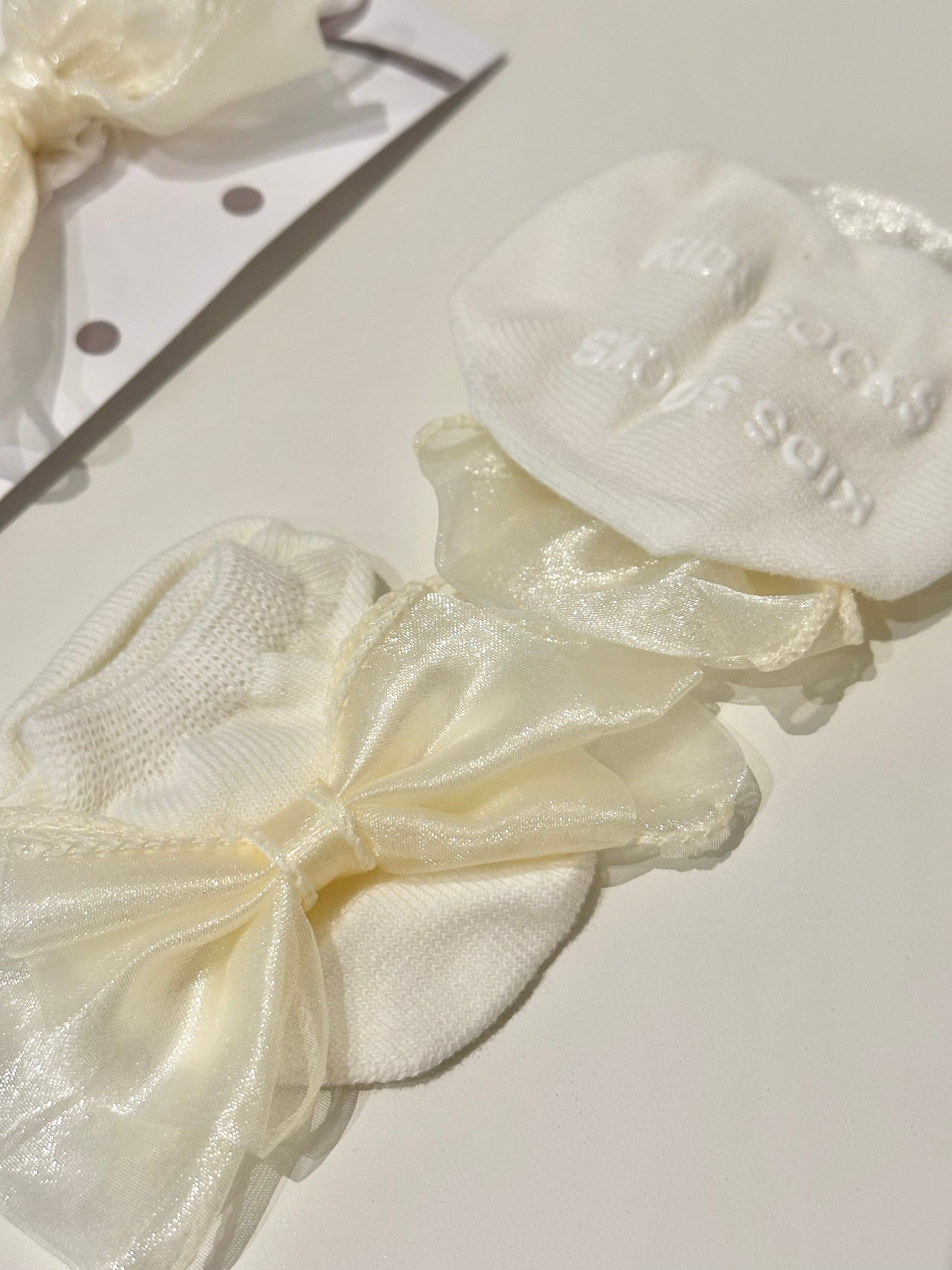 👶 1 par de calcetines suaves con delicado diseño de lazo, perfectos para mantener sus piecitos cómodos.