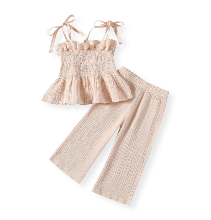 El Set Nala es la elección perfecta para los días cálidos. Confeccionado en una suave mezcla de 95% algodón y 5% poliéster tipo lino, este conjunto de dos piezas es ligero, transpirable y amigable con la piel delicada del bebé, ideal para mantenerla fresca y feliz durante todo el verano.