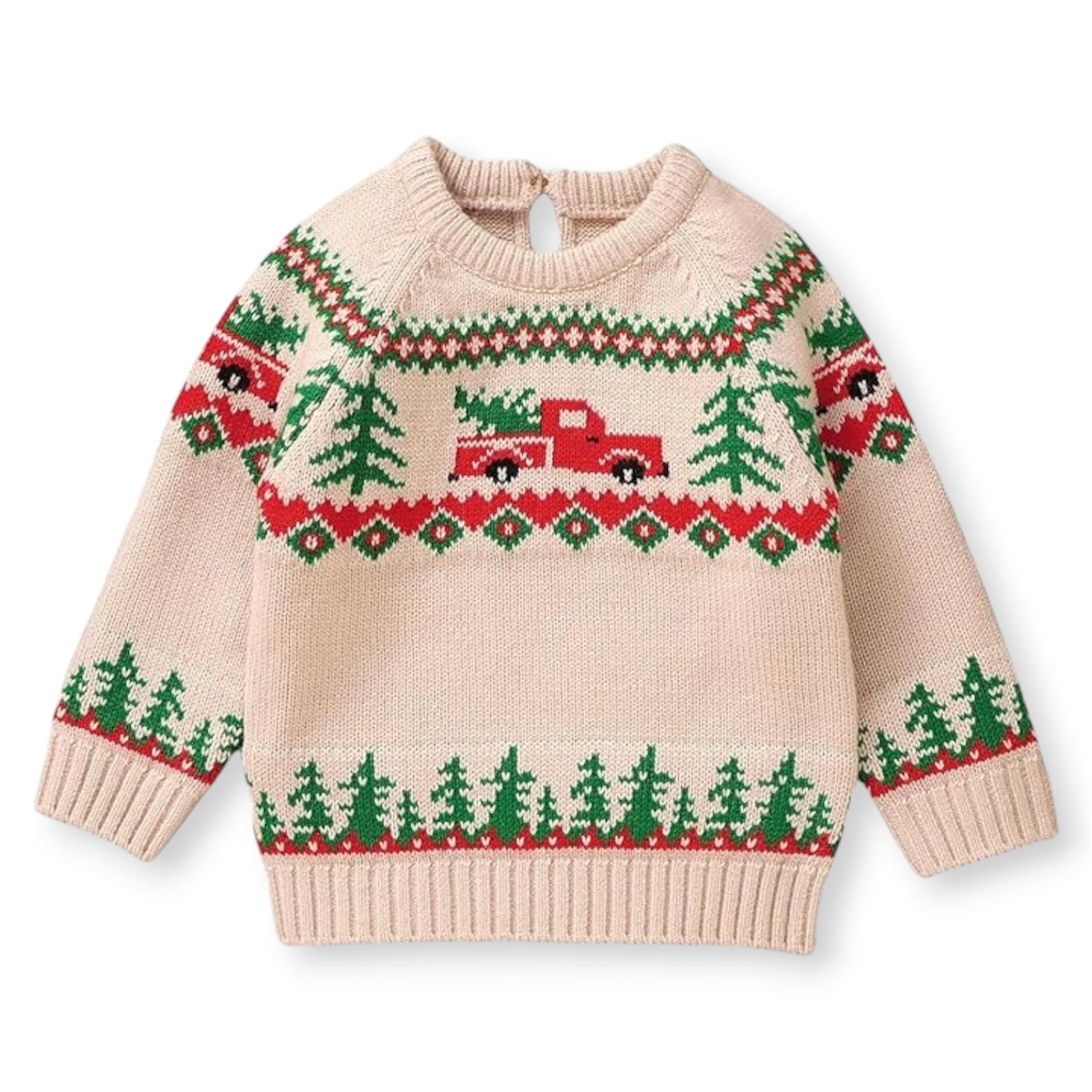 Confeccionado en una mezcla de algodón suave y poliéster de alta calidad, este suéter mantiene a tu pequeño cómodo, abrigado y listo para disfrutar cada momento especial junto al árbol 🎄.