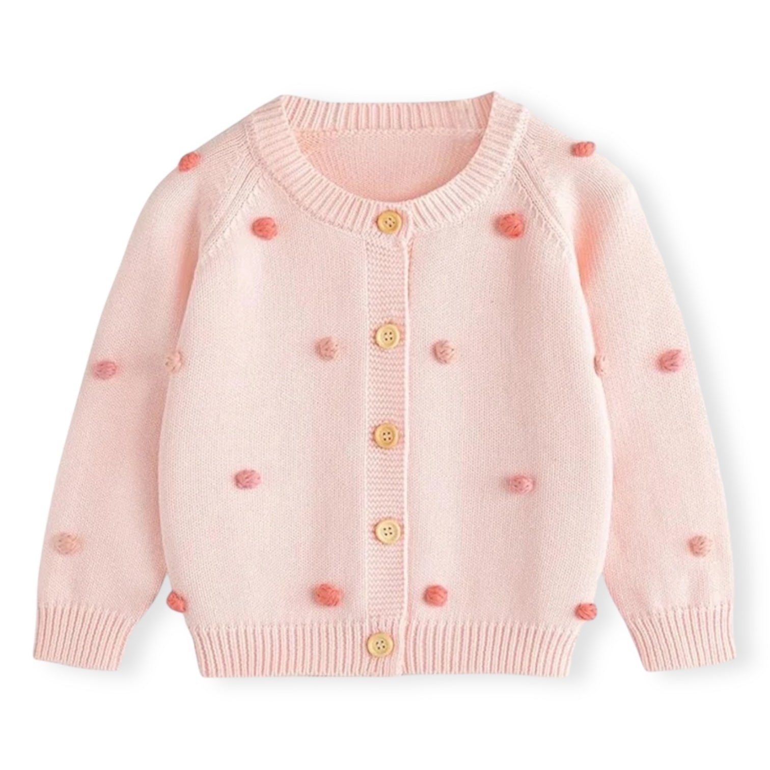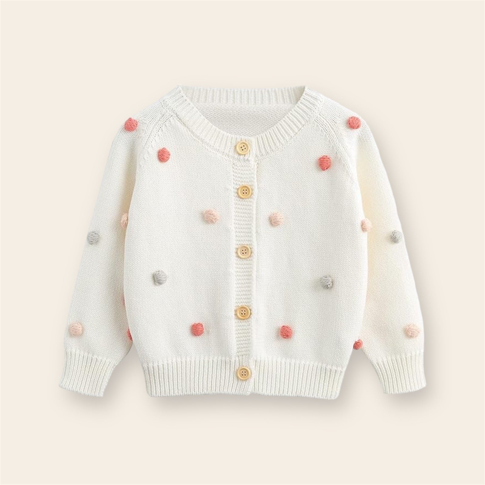 Este encantador suéter manga larga, presenta un elegante diseño con bolitas que le dan un toque informal pero chic. Perfecto para hacer que tu pequeño luzca adorable en cualquier ocasión.
