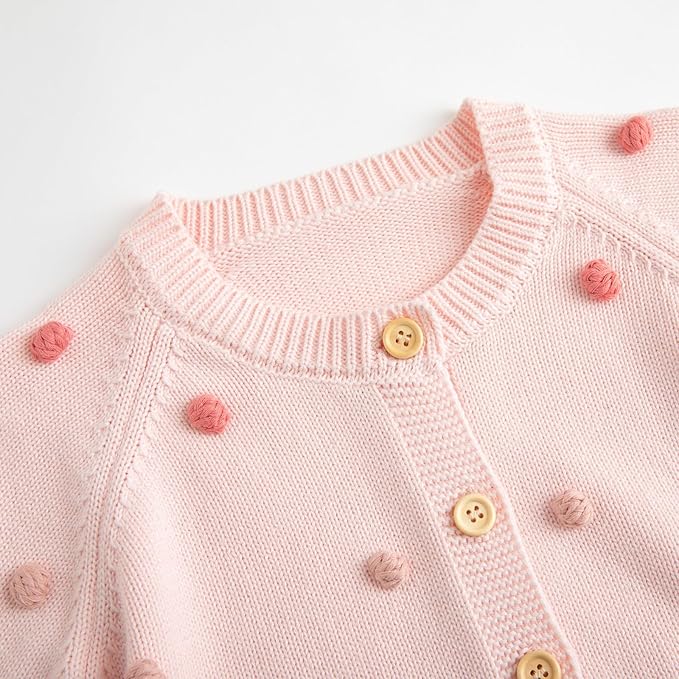 Nuestro Suéter Pompóm de Colores está confeccionado con un tejido suave, cómodo y transpirable, ideal para la delicada piel de tu bebé. Es seguro e inofensivo, proporcionando la máxima comodidad.
