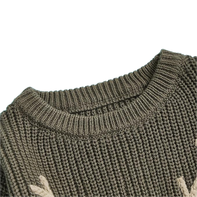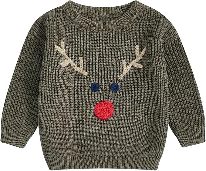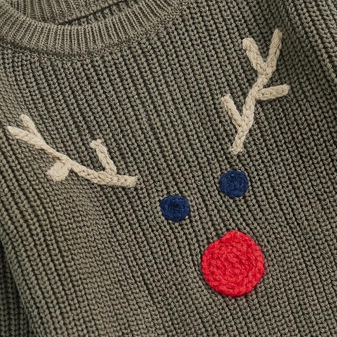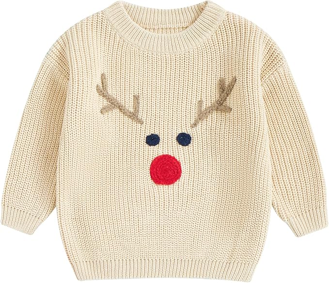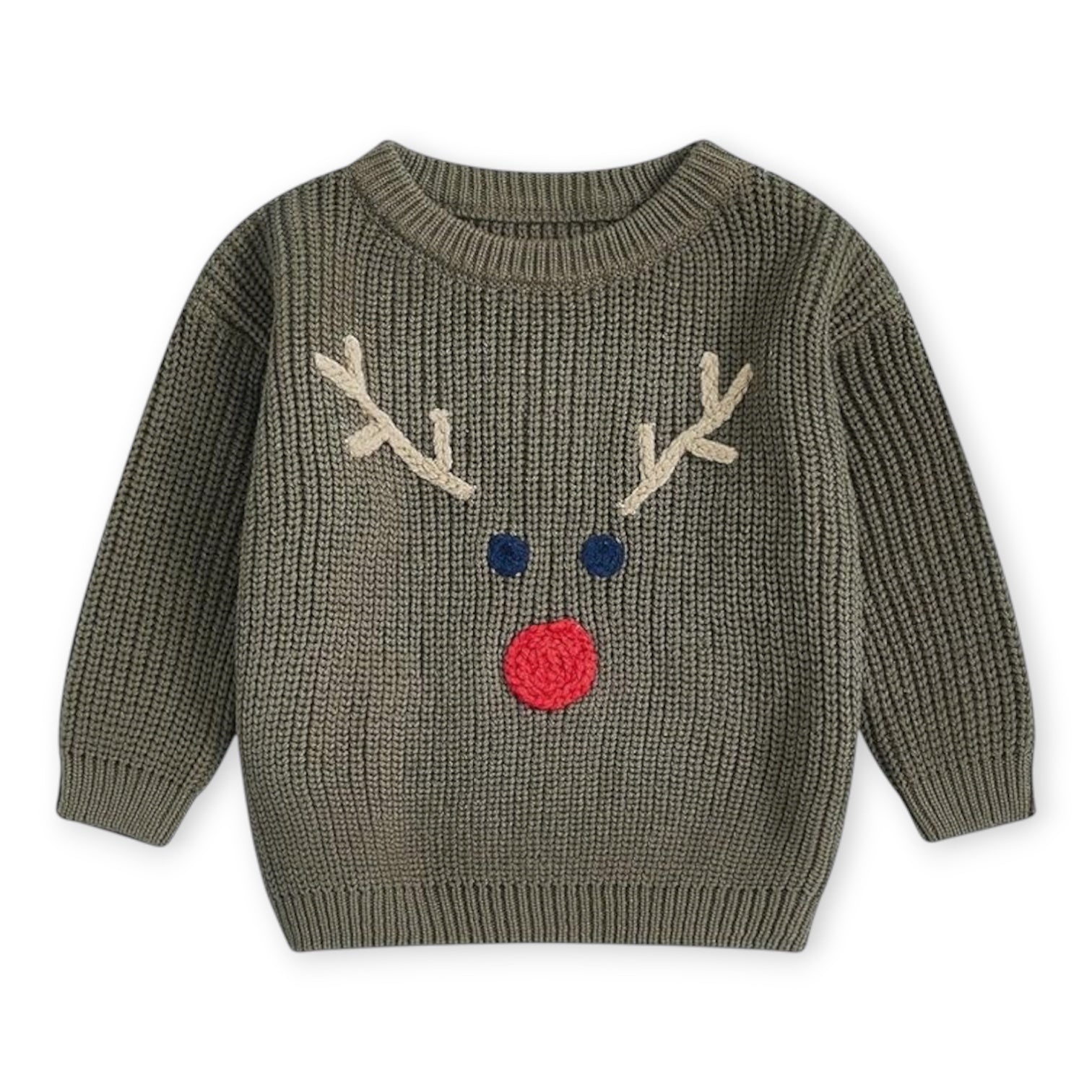 Un clásico navideño lleno de calidez y dulzura. Este suéter tejido combina la ternura del diseño de reno con la suavidad y abrigo perfectos para acompañar a tu pequeño en sus primeras celebraciones bajo las luces del árbol.
