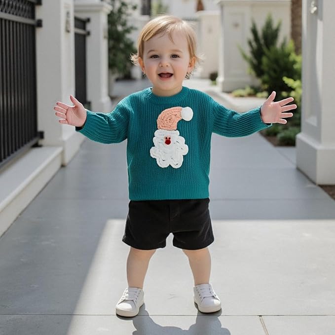 Su bordado de Papá Noel y su diseño tejido de punto grueso le dan un toque festivo y tradicional, perfecto para las primeras fotos junto al árbol o para compartir momentos mágicos en familia.