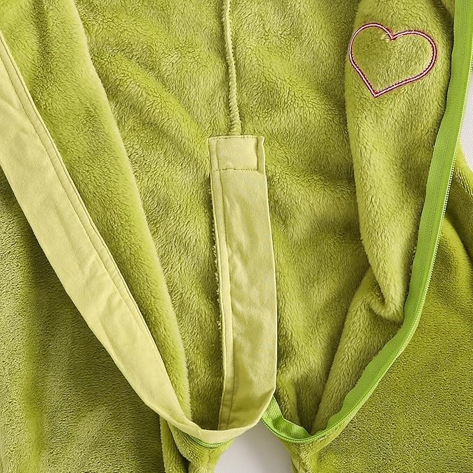 ¡El disfraz más divertido y suave para celebrar la temporada! Este adorable mameluco tipo Grinch convertirá a tu pequeño en el protagonista más tierno de la Navidad.